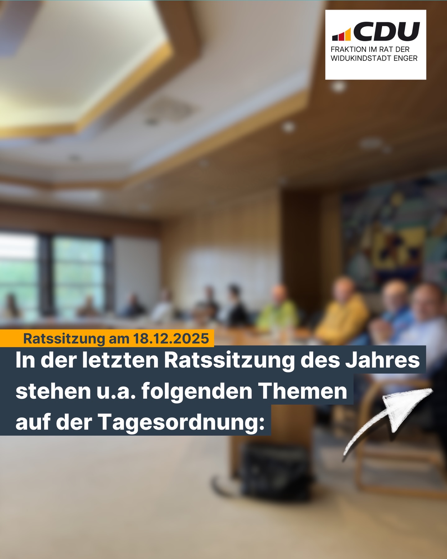 Bevor es in die wohlverdiente Weihnachtspause geht, stehen noch einmal wichtige Themen für unsere Stadt auf der Tagesordnung ? wir arbeiten weiter für ein starkes, lebenswertes Enger! 💪🎄